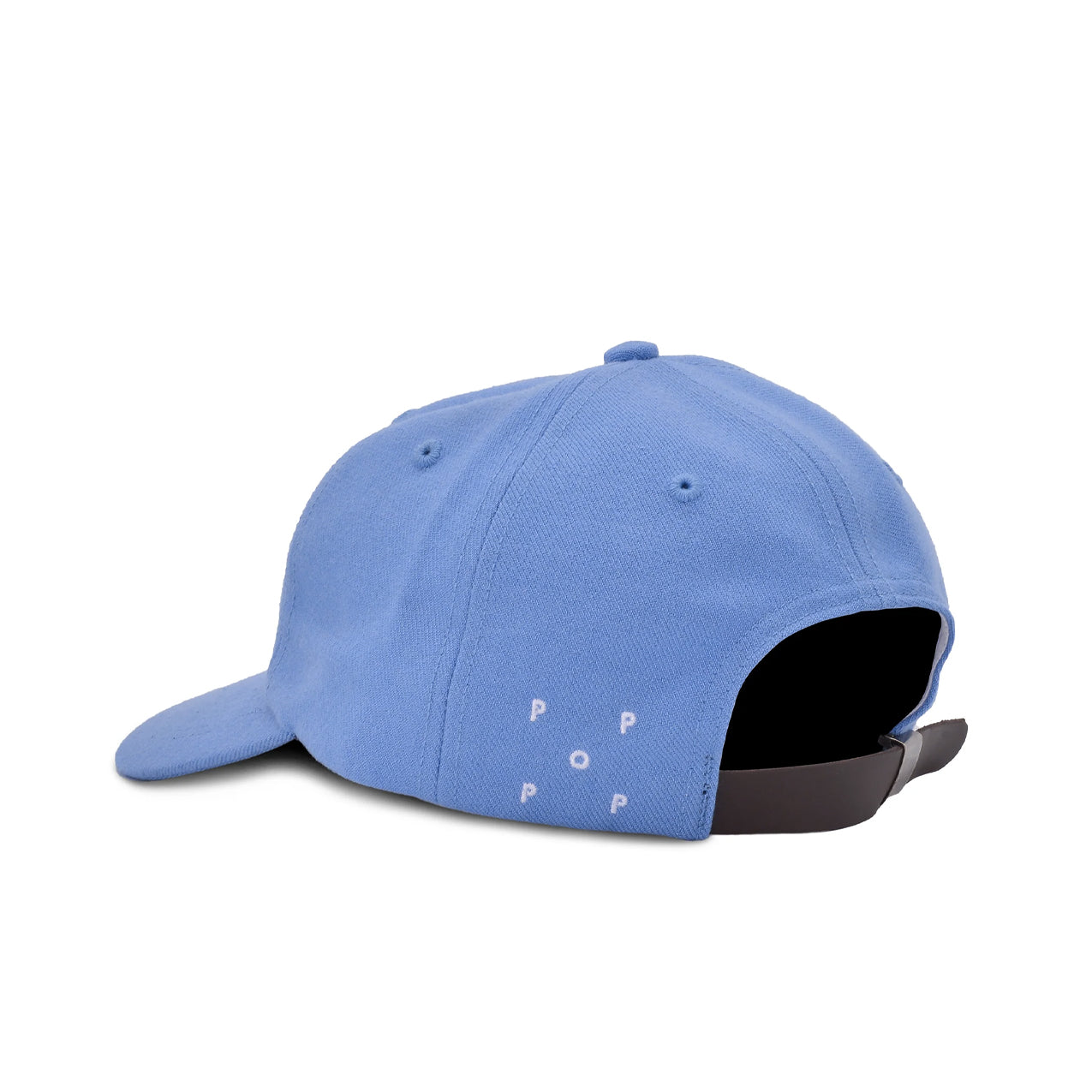 white embroidered pop logo at left side back